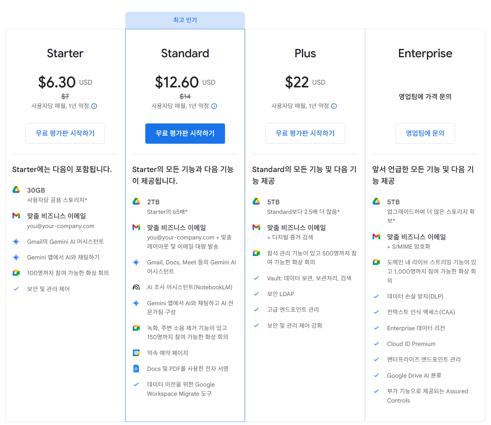 3️⃣구글 워크스페이스 요금제