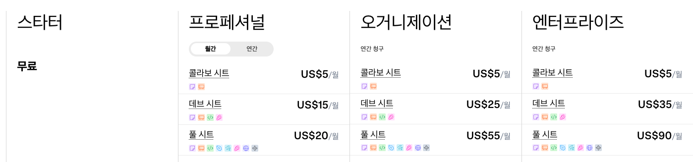 - 콜라보 시트(Collab Seat): FigJam + 피그마 Slides 이용 가능 (기획자, PM용)