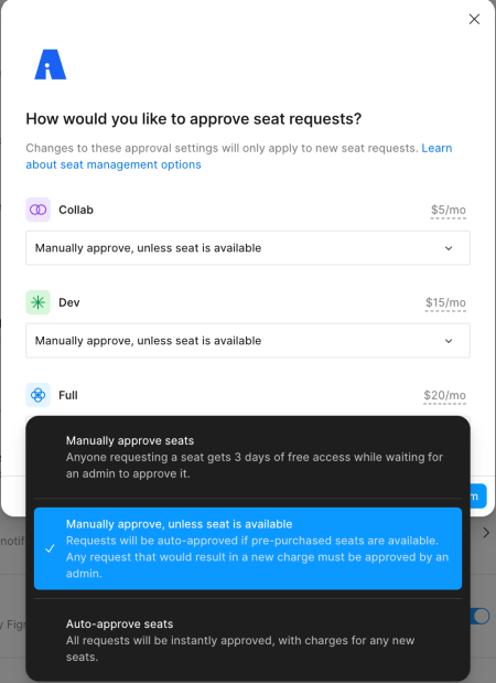 올해 청구 모델이 사용자 중심 업그레이드에서 벗어나 관리자가 기본적으로 시트 업그레이드에 대한 사전 승인을 할 수 있도록 변경되었습니다. 이제 팀원이 유료 기능을 사용하려 할 때 자동으로 과금되지 않고, 관리자의 승인을 받아야 합니다.