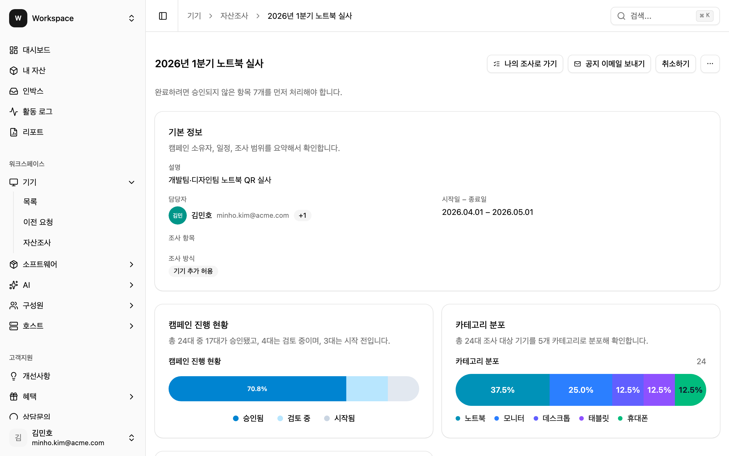 - 자산조사 부담 감소: QR 기반 캠페인으로 실물 확인과 시스템 업데이트를 동시에 처리합니다.