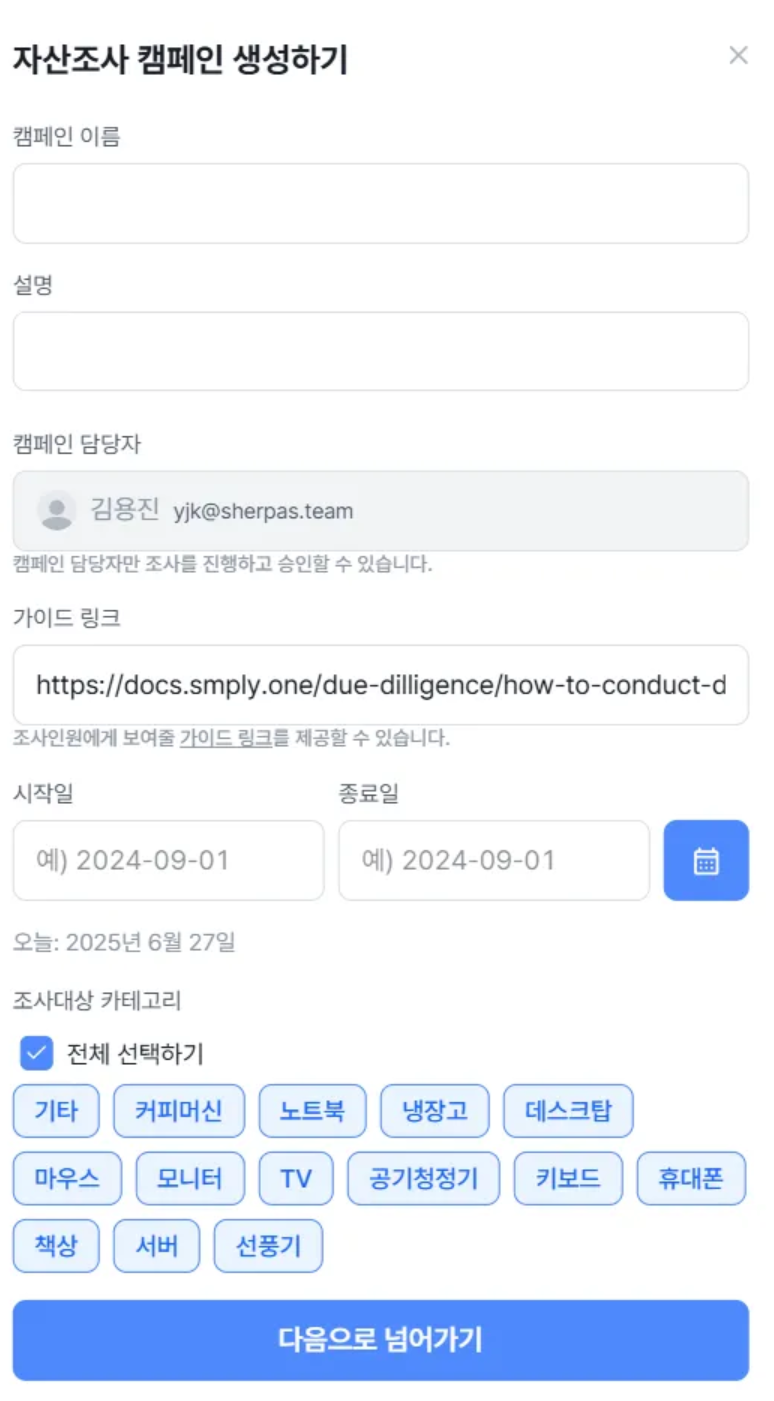 - 심플리 내에서 자산조사 캠페인 생성하기